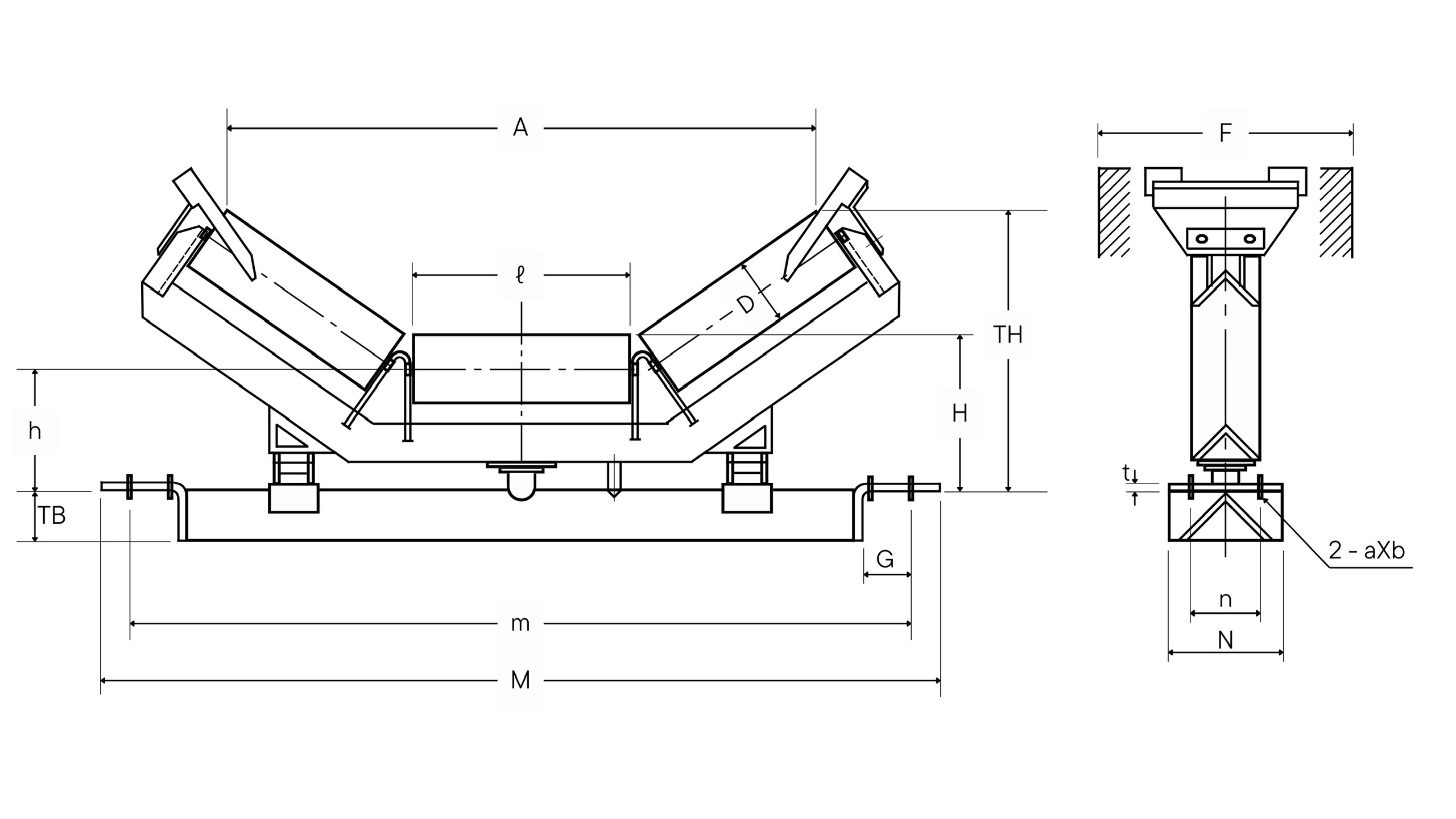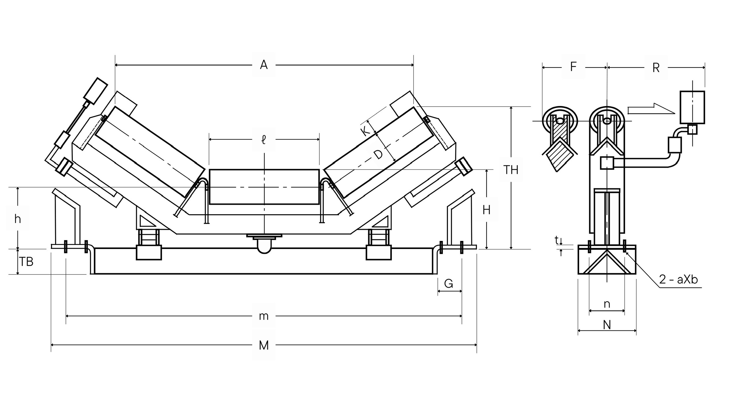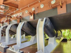 Cụm con lăn đỡ trên dạng treo có khuynh hướng tác động dịch chuyển băng và vật liệu về tâm do tác động của trọng lượng băng và khối lượng vật liệu vận chuyển. Sự linh hoạt của thiết bị này phù hợp với các loại vật liệu có kích thước lớn