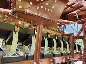 Liên kết cơ khí được sử dụng để điều chỉnh băng trong quá trình vận hành. Khi mép băng tiếp xúc với con lăn bên, con lăn có khuynh hướng đẩy băng dịch chuyển hướng tâm, khắc phục hiện tượng lệch băng. Các trục quay được thiết kế nhằm ngăn chặn hiện tượng gỉ và ăn mòn kết cấu.