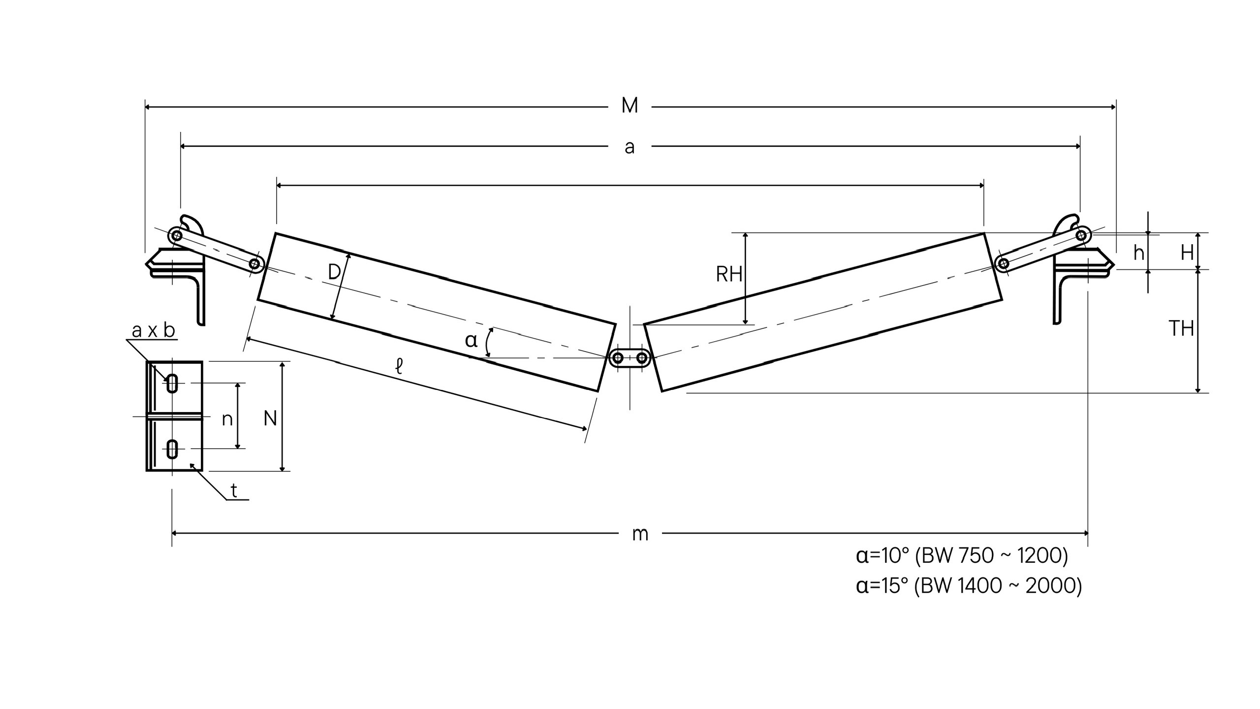 Các loại con lăn đỡ tiêu chuẩn trên đây được cung cấp nhằm đáp ứng yêu cầu về bề rộng băng tải và góc tạo máng (Trough angle).